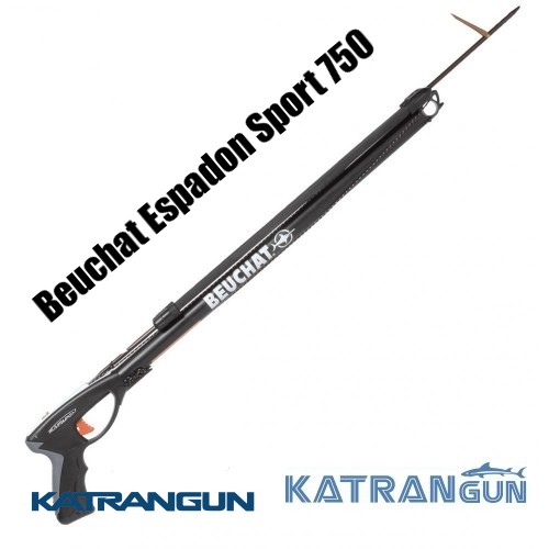 Арбалет Beuchat Espadon Sport 750 має рукоятнку, оснащену вставками, що запобігають прослизання при утриманні. Розрахований на кільцеві тяги з діаметром 13мм. Матеріал спуску - нержавіюча сталь, а підстава - високоякісний алюміній, що надає арбалету додаткову плавучість. Нова версія оголовья дозволяє встановлювати не тільки кільцеві тяги, а й парну 16мм. Рукоятка арбалета розташована ззаду і є можливість установки котушки при необхідності. Запобіжник арбалета дуже зручний у використанні.