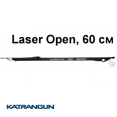 Рушниця арбалет LASER OPEN виготовлений для вимогливих мисливців, які прагнуть до точних і потужним пострілів. Він поставляється з 6.5 міліметровим гарпуном з пропилами, виготовлений зі сталі Sandvik з одним пелюсткою і тригранної заточуванням. Анатомічна ручка D'Angelo II білого кольору з низьким профілем з новим механізмом зворотного тригера з нержавіючої сталі, який додає додаткові 7 см довжини розгону гарпуна, дуже надійний і сумісний з усіма типами гарпунів, допускають різний діаметр гарпуна. Єдине гніздо відкритого оголовья може містити дві кільцеві гумові тяги, що дозволяє швидко замінити гарпун і забезпечує відмінний приціл.