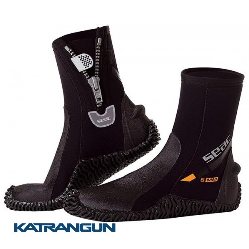 Seac Sub Basic HD - зручні дайверські черевики. Вони виготовлені з 5 мм неопрена, з внутрішньої сторони покриті нейлоном для кращої теплоізоляції. Підошва нековзаюча виготовлена з гуми, добре захищає ноги від порізів, проколів і ударів при ходінні по дну, застеленого камінням та коралами. Носок і п'ята додатково захищені гумовим покриттям. Швидке надягання черевика забезпечує зручна бічна блискавка. Для більш надійної фіксації ласт в районі п'яти є спеціальний упор, так звана шпора.