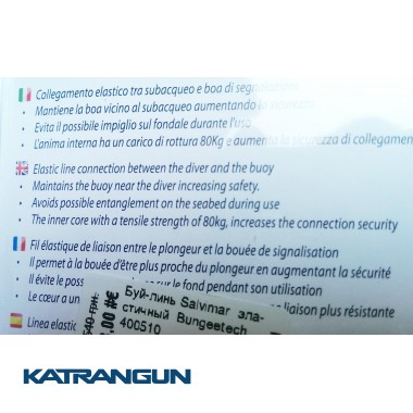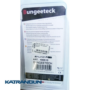 Буй-лин Bungeetech від італійського виробника Salvimar виготовлений з високоміцного шнура в латексному оплетенні діаметром 5 мм. Коли Ви плаваєте з 30-ма метрами буй-лина, він плутається, його потрібно намотувати, витрачати багато часу на всякі такі неприємні процедури. Головна перевага цього буйреп полягає в тому, що він має компактний розмір в складеному вигляді і легко розтягується при необхідності. Ступінь розтягування даного буй-лина: 4 метра можливо розтягнути до 17 метрів. Посилення на розрив становить 80 кг, що грає чимало важливу роль для безпеки водолаза.