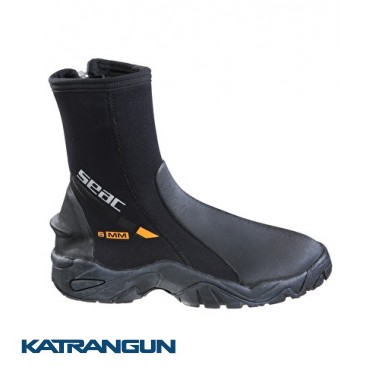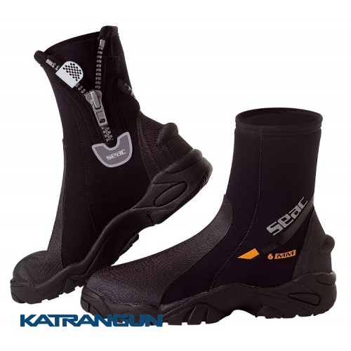 Seac Sub Pro HD - потужні, міцні, надійні, якісні дайверські черевики. Вони виконані з 6-мм неопрена, п'ята і мисок має додаткове гумове покриття, яке захищає черевик та саму ногу від всіляких ударів і забоїв. Усередині черевики покриті нейлоном для кращої теплоізоляції. Підошва товста напівжорстка, має глибокий протектор, забезпечує хороше зчеплення з кам'янистою та піщаною поверхнею, а також вберігає ногу від порізів та проколів об рифи. Одягаються за допомогою надійної бокової блискавки.