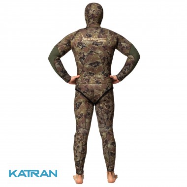 Більше камуфляжу - костюм максимально виконаний в однорідному зеленому камуфляжі. Дюратекс, який використовується в захисті грудей, колін і ліктів, не буде демаскувати підводного мисливця, оскільки теж підібраний у тон камуфляжу. Відсутність чорних контрастних деталей позитивно позначиться на маскуванні підводного мисливця.