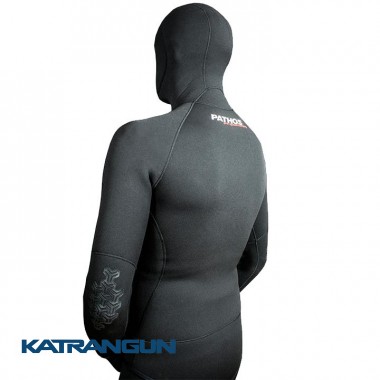 Гідрокостюм Onyx від перевіреного грецького бренду Pathos виготовлений з дуже еластичного неопрена, має вбудований шолом з обтюрацією, повний анатомічний крій. Під руками є внутрішня неопренова прокладка. На шоломі, зап'ястях і щиколотках мають обтюрация для більшого комфорту. Куртка внизу закріплена одним ґудзиком. Брюки з високою талією.