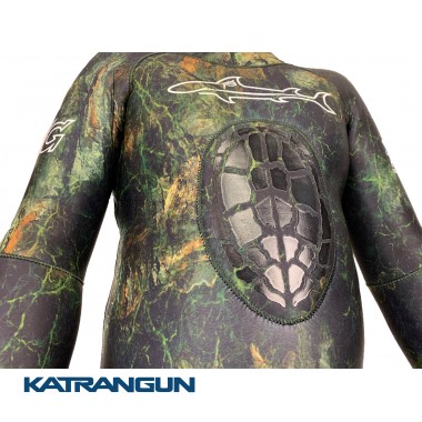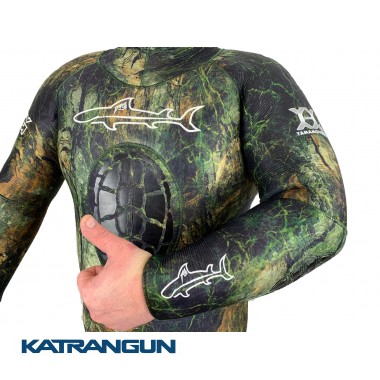 Неопрен Suiton - це японський неопрен преміум-якості. Виробляється на основі натурального, природного вапняку, що робить його екологічно чистим матеріалом, на відміну від багатьох інших марок неопрена. Suiton володіє найкращими характеристиками по теплоті серед інших марок Suiton, але обжимается, починаючи з 10 метрів. Таким чином, KatranGun Hunter Green Camo 3D Suiton - ідеальний варіант для полювання глибиною до 10 метрів.