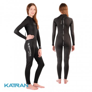 Тонкий женский монокостюм Scorpena Apnea F4 предназначен для занятий водными видами спорта и отдыха как в тёплой открытой воде, так и в бассейне.