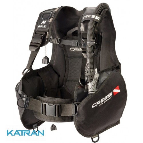 Cressi Sub Solid - це якісний жилет для дайвінгу з хорошою плавучістю, ідеально підходить для шкіл підводного плавання і центрів прокату обладнання. Він має кольорову армуючу стрічку у верхній частині спини, на рівні шиї, щоб поліпшити видимість у воді і захистити жилет від абразивного впливу.