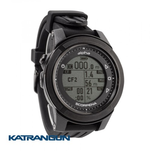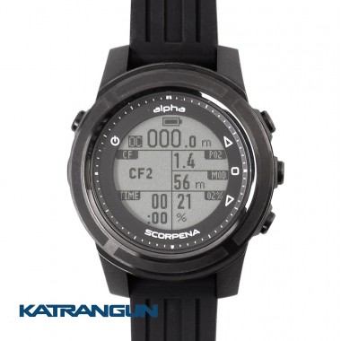 Комп'ютер Scorpena Apnea-Alpha надійний і простий в застосуванні, має інтуїтивно зрозуміле меню. Прилад працює в режимах фрідайвінга, дайвінгу (з підтримкою повітря, і сумішей з вмістом кисню до 56%) і режимі вимірювального приладу Gauge. Можна налаштовувати прилад по глибині від 1 до 3 метрів, в цьому випадку прилад автоматично вмикається і починає зчитувати показники температури води, кількості і часу занурень, часу відпочинку на поверхні, показує найбільшу глибину попереднього занурення. У режимі фрідайвінга прямо під водою можна включити таймер, щоб зчитувати час статики. Зайшовши в налаштування приладу, можна налаштувати параметри часу, вибрати одиниці виміру глибини, температури, рівень підсвічування екрану. У ньому можна встановити, який режим занурення включається автоматично, через скільки прилад переходить в режим енергозбереження. Режими занурень супроводжуються звуковим і вібросигналом, що є додатковою перевагою цього приладу. Встановлюються сигнали-оповіщення: 3 сигналу по глибині, 3 сигналу за часом занурення і 3 сигналу за часом відпочинку на поверхні. Комп'ютер дозволяють вести Dive Logs, куди можна зберігати глибину, тривалість, час і дату всіх занурень, а також сортувати їх по будь-якому параметру, в тому числі за видами занурень, якщо людина займається різними видами підводного плавання. Прилад оснащений перезаряджається літіо-іонним акумулятором, тобто його можна заряджати через кабель, не вдаючись до допомоги сервісних центрів. Бездротовий зв'язок з телефоном по Bluetooth для обміну даними з додатком Dive Story. Ця програма дозволяє записувати Журнали занурень, змінювати налаштування комп'ютера, а також оновлювати його програмне забезпечення і задавати необхідні значення в 3-х режимах. Додаток Dive Story доступно для мобільних пристроїв на iOS і Android. Прилад представлений в білому і чорному кольорі, має ударостійке загартоване скло. Обід корпусу (безель) і кнопки виготовлені з нержавіючої сталі. Особливістю цього приладу є захист корпусу від попадання води навколо кнопок, що дозволяють користуватися ними під водою на глибині до 100 м. М'який силіконовий ремінець має збільшену довжину, що дає можливість носити його навіть поверх товстого гідрокостюма. При необхідності ремінець можна легко зняти або поміняти.