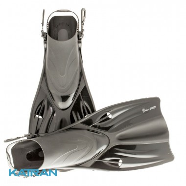 Класичні, універсальні ласти для плавання, які мають зручні м'які калоші з відкритою п'ятою і регульованим гумовим ремінцем, забезпечують максимальний комфорт при тривалому використанні. Вони добре підійдуть для снорклинга, дайвінгу і просто плавання у відкритих водоймах. Двухкомпонент лопать з технополімера і гуми забезпечує відмінну силу гребка, швидкість і маневреність. Завдяки широкому діапазону регулювання розміру (38-41, 42-46) - однією парою ласт можуть скористатися кілька чоловік. Еластичний гумовий ремінець дозволяє легко і швидко відрегулювати ласти під потрібний розмір.
