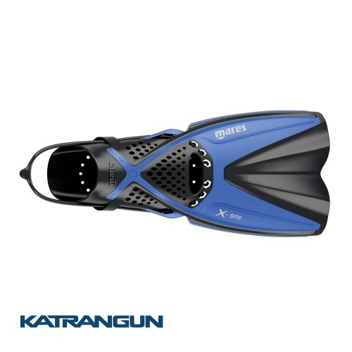 Ласти з відкритою п'ятою Mares X-One - створені для сноркелінгу, відмінно підходять для початківців плавців і дітей. Вони мають зручну калошу для ноги, еластичний ремінець кріплення на п'яту, коротку лопать. Отвори на калоші для ніг допомагають зменшити «парашутний ефект», при якому потік води в калоші уповільнює рух. Вони так само зменшують ефект вакуумного всмоктування, ласти значно легше знімати. М'які поздовжні вставки на лопаті допомагають контролювати деформацію ребра лопаті при гребках. Форма лопаті дає можливість збільшити кількість води, що переводиться і тягу під час руху без зайвих зусиль.