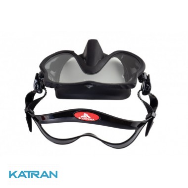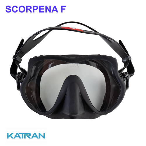 Безрамна одностекольная маска SCORPENA F володіє сверхстільним матовим силіконовим обтюратором, який не тільки не відбиває сонячні промені, але і володіє вкрай вражаючим зовнішнім виглядом. Одностекольная конструкція забезпечує безперервність огляду, а за рахунок того, що скло маски вбудовано прямо в силікон, досягається мінімальна вага і подмасочний обсяг, що робить можливим більш глибоке занурення на затримці дихання. Обтюратор з м'якого чорного силікону має матову поверхню - маска на рідкість приємна як на дотик, так і на вигляд, і володіє зручною посадкою на обличчі. Роздвоєний силіконовий ремінець кріпиться за допомогою зручної пряжки і володіє системою мікрометричною регулювання натягу. Спеціальні кріплення пряжок, вбудованих в силіконовий обтюратор роблять маску більш компактною і надають конструкції еластичність, за рахунок чого зменшується ризик поломки пряжки, в порівнянні з жорстким кріпленням на рамці. У комплект входить зручний і практичний бокс Scorpena для транспортування і зберігання маски.