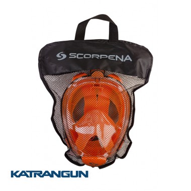 Повнолицев маска Scorpena створена спеціально для любителів сноркелінга. Маска випускається в трьох розмірах: велика, середнього розміру і мала. Маски малого розміру відмінно підійдуть для дітей. За рахунок великого обсягу і сферичної форми маска забезпечує чудовий огляд до 180 градусів. Обтюратор виконаний з гіпоалергенного силікону. Ретельно продумана система циркуляції повітря повністю запобігає запотівання. Суха трубка блокує потрапляння води в маску навіть у разі повного занурення, що робить її зручною навіть при плаванні по хвилях. Відсутність загубника дозволяє комфортно відчувати себе в воді навіть новачкам і тим, для кого викликає утруднення дихання ротом. У повнолицев масці для снорклинга дихання нічим не відрізняється від звичного нам дихання на березі. Еластичний потиличний ремінь з можливістю регулювання і швидкороз'ємними пряжками забезпечує відмінну фіксацію незалежно від розміру голови, а так само зручне надягання і зняття. Повнолицев маска поставляється в м'якому сітчастому мішечку з ручкою. Так само в комплекті є беруші і спеціальний гвинт для установки камери у верхній частині маски.