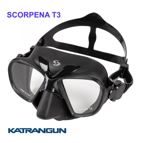 Модель Scorpena T3 має мінімальний підмасковий простір. Це дозволяє витрачати мінімум повітря для компенсації тиску всередині маски під час глибоких нирок.
