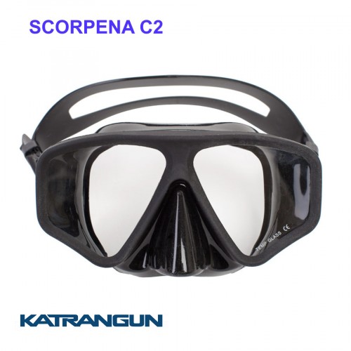 Оновлена модель маски Scorpena C володіє ще більш зручною формою, що підходить під більшість типів осіб, і широким кутом огляду. Пряжки мікрометричною регулювання зручної форми дозволяють налаштувати зручне натяг ремінця одним рухом. Розташування цих пряжок безпосередньо на силіконовій спідниці багаторазово підвищує надійність конструкції, так як випадково відламати їх тепер практично неможливо.