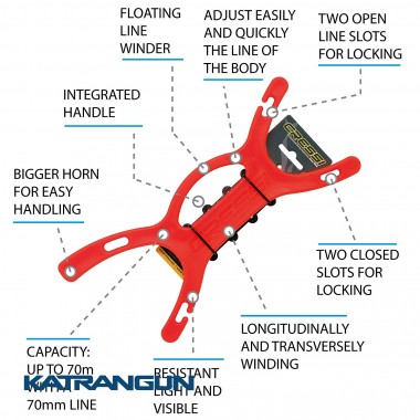 Мотовило для буй-лина Cressi - стійке, дуже легке і дуже помітне. Тверда структура з Напівгнучкі пластиковим матеріалом з відмінним опором і хорошою плавучістю. Відмінна пропускна здатність. Великий "ріг" для зручності в зверненні. Вбудована рукоятка не перешкоджає перекручуванню лина - для швидкого розкручування.