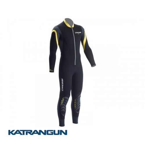 Чоловічий костюм Cressi Sub Lui добре підходить для любителів плавання в теплих водах. Виробник використав неопрен з двостороннім покриттям нейлоном. Товщина костюма 2,5 мм. На шиї, рукавах і щиколотках присутні манжети, які захищають від попадання води. Ущільнені наколінники запобігають механічним пошкодженням. Завдяки розташуванню застібки спереду і еластичному неопрену, істотно спрощується нахили тулуба вперед і, одночасно, збільшується комфорт спини, оскільки на хребет не давлять зубчики блискавки. Cressi Sub Lui забезпечує чудову свободу рухів і тому бездоганно підійде для водних видів спорту.