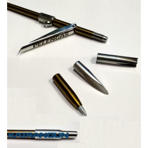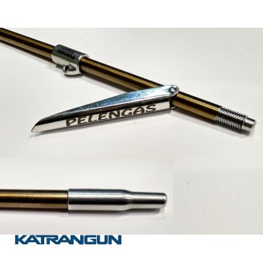 Гарпун для підводного полювання Pelengas Magnum оснащений довгим вбудованим прапорцем. При попаданні гарпуна в тіло риби, прапорець відкривається і надійно утримує видобуток, не даючи їй можливість вислизнути і загубитися. При виготовленні гарпуна використовувалася високоміцна сталь Sandvik. Вона прекрасно протистоїть корозії і механічних деформацій. Гарпун різьбовій розжарений. Діаметр різьби становить 7 міліметрів. Завдяки такому технічному рішенню можна підібрати потрібний наконечник виходячи з умов полювання. Дана модель комплектується трьома наконечниками: 3-гранний, дюбель, корона, і призначений для пневматичної рушниці Pelengas 70.