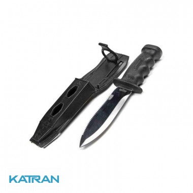 Недорогий ніж середніх розмірів Cressi Sub Supertotem являє собою відмінне співвідношення "ціна-якість". Форма клинка у вигляді листа - найоригінальніший дизайн, який на практиці показав себе дуже зручним і ретельно продуманим. Широке лезо з нержавіючої сталі: одна сторона з прямою кромкою, інша - серрейторна заточка. Обидві сторони леза надзвичайно гострі і високоефективні в роботі. Анатомічна рукоятка виготовлена з технополімера, оснащена рядом заглиблень для пальців. Упор призначений для запобігання зісковзування руки. Піхви виконані з пластика, комплектуються класичними еластичними ремінцями для кріплення ножа на нозі або руці. Двосторонній утримувач з фіксуючим гумовим кільцем виключає випадкове випадання ножа з піхов і дозволяє легко дістати його однією рукою.