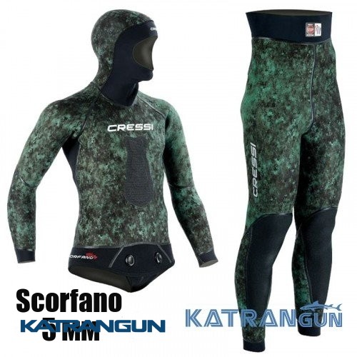 Cressi Sub Scorfano - це чудовий гідрокостюм для підводного полювання, який відмінно підходить для плавання в прохолодній воді. Камуфляжне розфарбування дозволяє злитися з навколишньою підводною місцевістю і максимально непомітно для риб полювати. Дана модель складається з куртки і брюк з високою талією. Також в комплекті йде незнімний шолом. Коліна, лікті і груди укріплені додатковими вставки. Чудове поєднання ціни / якості. У Cressi Sub Scorfano використовуються спец шви UltraSeal Liquid. Варто виділити і подвійну обтюрацію на зап'ястях і ногах для кращої ізоляції від води.