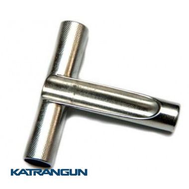 Безопасная увеличенная заряжалка для гарпунов Pelengas длиной 14мм имеет форму буквы Т и защищает руки от распространённых травм, когда гарпун нужно вставить силой внутрь ствола, так как острие гарпуна расположено выше места, где прикладывается сила, а гарпун нередко срывается через несколько мгновений после его зарядки, если поршневой фиксатор плохо отрегулирован. При снятии заряжалки с острия, вы двигаете руку вверх, а не вбок. В связи с этим, можете быть уверены в надёжной защите пальцев и ладоней от острых наконечников.