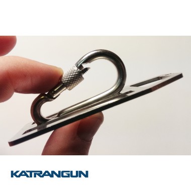 D-кольцо от фирмы KatranGun предназначено для удерживания грузов от перемещения, а также простой, удобной и быстрой фиксации всех необходимых вещей. Изготовлен из прочного материала. Данное приспособление имеет прорезь под марсельский ремень, карабин и кольцо для фиксации дополнительного карабина. На него можно зацепить гермобокс, в который можно положить телефон, запасные наконечники или аккумуляторы. Также есть возможность крепления кукана, который можно закрепить на дополнительном кольце или непосредственно на карабине. Пользуясь D-кольцом с карабином, Вы облегчаете и защищаете свою жизнь под водой.