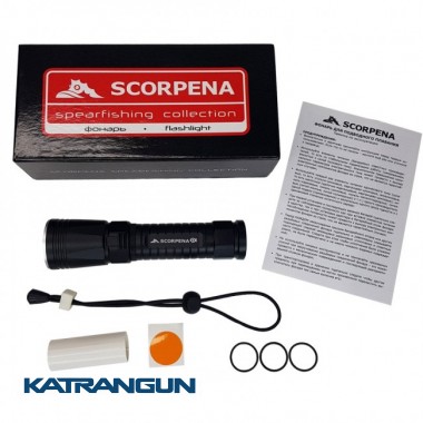 Фонарь Scorpena D предназначен для использования во время подводной охоты как в качестве подствольного, так и ручного фонаря подводного охотника. Этот компактный фонарик имеет длину менее 15 см и диаметр 3,8 см в самой широкой (головной) части. Мы укомплектовали фонарь Scorpena D удобным эластичным шнуром для закрепления его на запястье охотника. Эластичность этого шнурка позволяет быстро освободиться от фонарика в случае его застревания, запутывания или зацепления за какое-нибудь подводное препятствие. Для дополнительного удобства регулировки и фиксации на запястье, эта петля снабжена быстрорегулируемым зажимом. Фонарь Scorpena D имеет переключатель режимов работы самого удобного типа - магнитный, с плавным изменением мощности светового потока: от 30 до 450 Lm. То есть теперь Вы всегда можете оперативно и интуитивно понятно отрегулировать количество излучаемого света в зависимости от условий погружения и подводных обстоятельств. В отличии от кнопочных переключателей, на функционирование переключателя этого типа глубина погружения не влияет. Переключатель полностью изолирован от внутренней герметичной части корпуса, что значительно повышает его надёжность. Луч фонаря Scorpena D имеет ярко выраженную центральную часть с широким рассеянным ореолом. Для питания фонаря Scorpena D могут быть использованы 3 недорогие батарейки типа ААА (мизинчиковые) в специальном барабанном держателе, который входит в комплект поставки. Возможность использовать эти легко доступные и широко используемые батарейки для питания этого фонаря делает возможным его применение при длительных поездках в удалённые от цивилизации места. Для регулярного же использования этого фонаря возможно применение в нём аккумуляторной батареи типоразмера 18650 с соответствующим зарядным устройством. Для аккумулятора в коробке с фонарём имеется специальный адаптер-проставка. Время свечения в случае использования аккумулятора будет зависеть от ёмкости приобретённой батареи, степени её заряда и температуры окружающей среды. Поставляется фонарь в картонной коробке, два адаптера для использования с различными типами элементов питания, эластичной петлей на запястье с предохранителем переключателя, самоклеющимся янтарным цветофильтром, памяткой по эксплуатации и запасными уплотнительными колечками.
