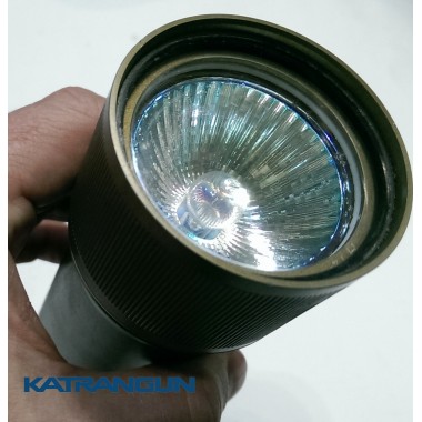 Фонарь специально разработан для любителей галогенового света, также он отличается от всех других галогеновых фонарей своей интеллектуальностью. Данная модель обеспечивает достаточным временем свечения. Угол свечения выбирается сменной лампой. Управление фонарем обеспечивает специально разработанная плата-регулятор. Управление осуществляется с помощью не фиксируемого контакта-кнопки.