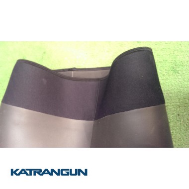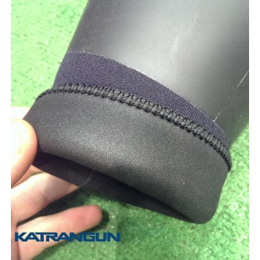 Все края гидрокостюма (щиколотки, запястья, шлем) – аккуратно прошиты (так называемый оверлок). Область коленей на штанах – защищена специальным материалом Supratex, который предотвратит истирание этих участков об ракушку, камни, водяные орехи. Данный тип усиления визуально выделяется в виде крупной вязки и гораздо надёжнее разного рода напылений, которые наносят на колени гидрокостюмов импортных брендов. Супратексовые наколенники на гидрокостюмах KatranGun Hunter, при этом, покрывают достаточно протяжённые участки, что является ещё одним плюсом.