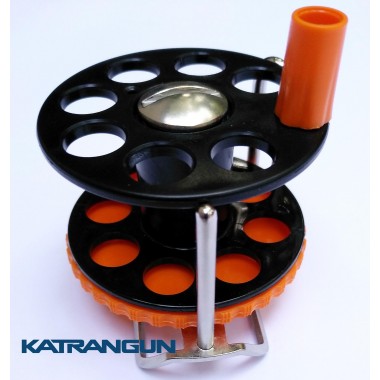 Снабжена уникальным и удобным тормозом, в виде диска, расположенного под шпулей. Ручка катушки имеет форму конуса, благодаря чему линь не будет за неё цепляться в самые ответственные моменты. Барабан катушки изготовлен из конструкционного литьевого пластика, что позволяет использовать катушку как жарким летом, так и в лютые морозы. Разобрать катушку проще простого при помощи монеты или любого другого плоского предмета. Идеально подходит для ресиверов диаметром 28-40 мм.