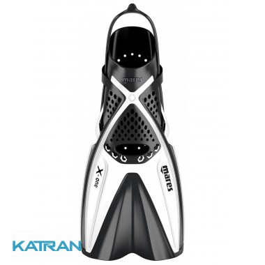Ласты с открытой пяткой Mares X-One ‒ созданы для сноркелинга, отлично подходят для начинающих пловцов и детей. Они имеют удобную калошу для ноги, эластичный ремешок крепления на пятку, короткую лопасть. Отверстия на галоше для ног помогают уменьшить «парашютный эффект», при котором поток воды в калоше замедляет движение. Они так же уменьшают эффект вакуумного всасывания, ласты значительно легче снимать. Мягкие продольные вставки на лопасти помогают контролировать деформацию ребра лопасти при гребках. Форма лопасти дает возможность увеличить количество перемещаемой воды и тягу во время движения без лишних усилий.