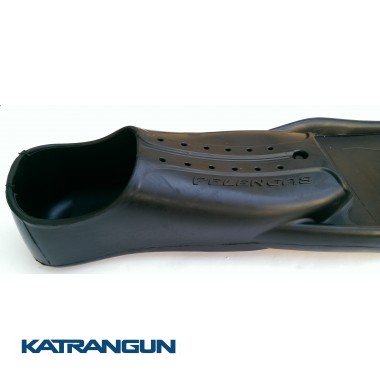 Ласты для подводной охоты Pelengas Black из конструкционного полимера получили длину 76 см и ширину 19 см, так же как у их карбонового аналога. Переменная толщина от носка к комлю колеблется от 2мм до 6.5мм. Что касается угла изгиба, то он составляет 22°. Лопасти от ласт так же идеально подходят к калошам не только от производителя Pelengas, а и BS Diver, Mares или Omer, так как они имеют заложенные в своей конструкции маркировочные линии и углубления. Пружинность ласт имеет коэффициент около полутора килограмм. Так же лопасти производятся в разных жесткостях.