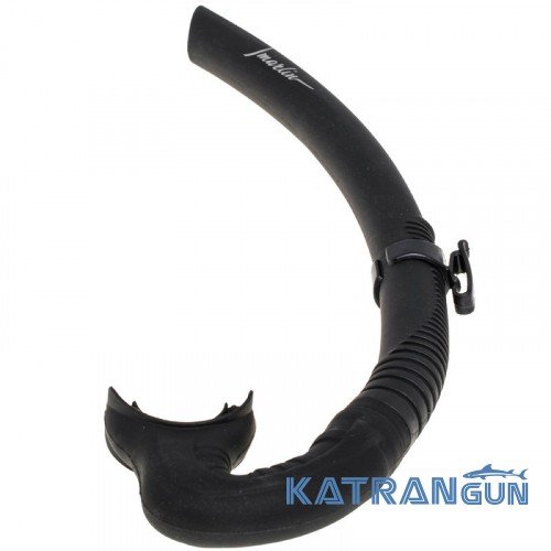 Эта замечательная трубка из матового технополимера средней жёсткости. Благодаря антибликовому покрытию она менее заметна при охоте. В виду эргономичности формы, создает меньшее сопротивление в воде. Имеет крепление для маски, и удобный, анатомической формы, съемный загубник. Можно по праву считать её идеальной трубкой для подводного охотника.