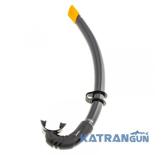 Классический дизайн и чёрный цвет. Отлично подходит для подводной охоты в водоемах с плотным покровом растительности на поверхности воды. За счет высокой жесткости трубка с легкостью пробивает слой растений и дает возможность легко дышать, не выныривая на поверхность. Остается добавить, что трубка оснащена анатомическим загубником и удобным креплением для маски.