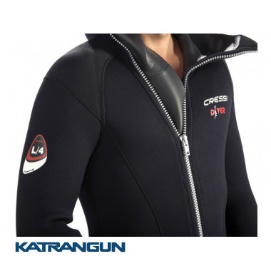 Классический монокостюм Cressi Sub Diver оснащен встроенным шлемом. Отличный вариант гидрокостюма для дайвинга. При изготовлении использовался высококачественный эластичный неопрен, толщиной 5 миллиметров. Внутри и снаружи гидрокостюм дублирован нейлоновым покрытием. Анатомический крой. Костюм комфортный в носке, хорошо сидит и не сковывает движения. Удлиненная фронтальная молния расположена спереди для удобного одевания без чьей-либо помощи. Супратексовые накладки на коленях защищают от механических повреждений и преждевременного истирания. Обтюрация на лице из "гладкой кожи" для улучшения теплоизоляции костюма.