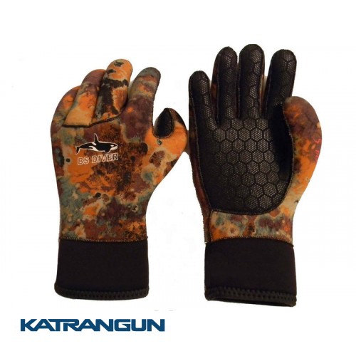 Перчатки Camolex от украинского производителя BS Diver толщиной 5 миллиметров являются хорошим вариантом перчаток для охоты в теплой воде (при температуре 18-25 градусов). Снаружи данная модель дублирована нейлоном камуфлированной расцветки коричневого цвета. Благодаря этому, подвох может оставаться более незаметным. Внутри перчатки покрыты специальным материалом "открытая пора". Ладони и пальцы дополнительно усилены антискользящим полиуретановым рисунком для защиты от истираний и порезов. Также для увеличения прочности изнутри область ладоней покрыта нейлоном.
