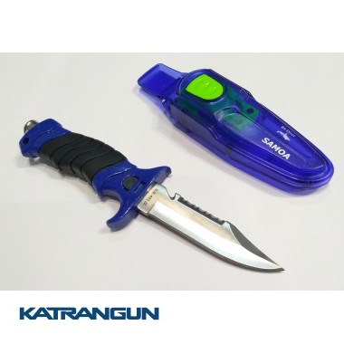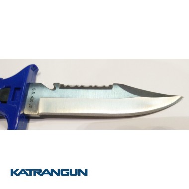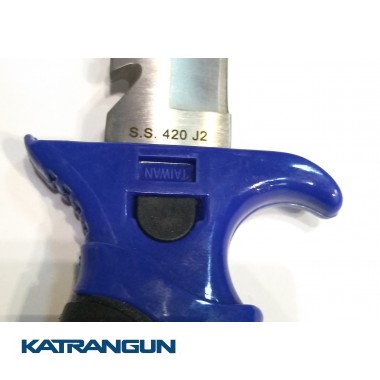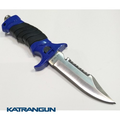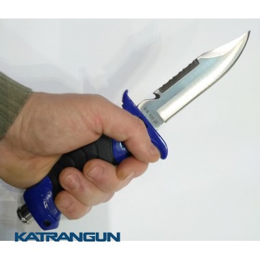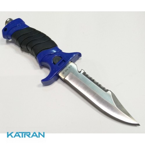 Универсальный нож из нержавеющей стали с серейтором и стропорезом. В комплекте с удобно открывающимися ножнами и ремешками для крепления. Рукоятка ножа удобна в эксплуатации — предотвращает соскользание руки на лезвие ножа. Отличный выбор для подводных охотников и дайверов. Длина лезвия 11 см.