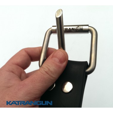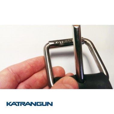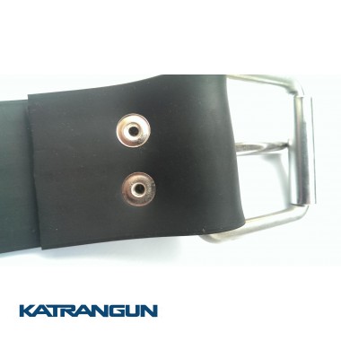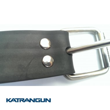 Грузовой пояс от фирмы KatranGun предназначен для крепления грузов из свинца. Ремень изготовлен из резины. Материал очень эластичный, устойчив к перепадам температуры и воздействию прямых солнечных лучей. При выполнении пряжки использовалась нержавеющая сталь пищевых марок. Прокатка-углубление в центре обкатного ролика обеспечивает точную фиксацию "язычка" и уменьшает выступающую часть. Благодаря яркому металлическому блеску пряжки, пояс можно будет легко найти в случае потери при экстренном сбросе. Пряжка фиксируется на ремне с помощью двух заклепок, которые можно заменить в домашних условиях в случае поломки.