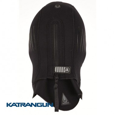 Неопреновый 7-миллиметровый шлем с застежкой-молнией на затылке. Неопрен толщиной 7 мм покрывает боковые панели и заднюю часть головы, а над лбом и щеками он уменьшается до 5 мм и 3 мм на подбородке для обеспечения оптимального тепла, исключая усталость челюстей.