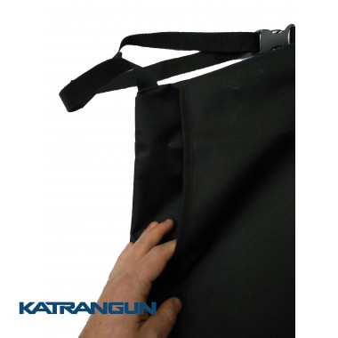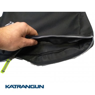 Сумка для раков KatranGun Раколов XL выполнена в виде передника, то есть дизайн и кройка выполнены так, что бы подводный охотник мог повязать сумку на пояс спереди. Она дает возможность собрать мидии, раков, рапаны или крабов, не отвлекаясь от охоты. Кроме того, сумка имеет шлейки, которые можно с лёгкостью регулировать в области шеи и талии, а так же молнию в дне, помогающую просто и быстро сбросить собранное на сушу. Карман у сумки расположен справа сбоку и гарантирует, что ни раки ни крабы не покинут сумку.