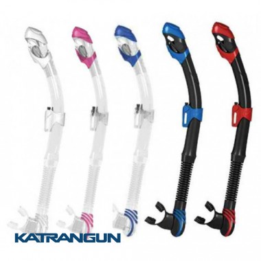 - Трубка выполнена из пластика с гофрированной силиконовой вставкой, позволяющей удобно располагать ее на голове ныряльщика с наибольшим комфортом
