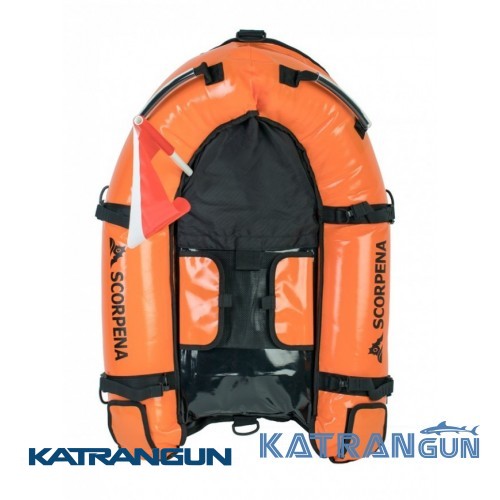 - Буй-лодка имеет три независимых отсека с внутренними воздушными камерами. Такая конструкция позволяет охотнику лечь грудью на кормовую камеру-подушку и отдыхать на поверхности не прилагая усилий для удержания себя на поверхности. При необходимости преодолеть большие расстояния по воде, буй можно использовать как опору для верхней части тела, при этом свободно грести ластами в воде.
