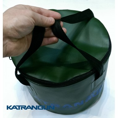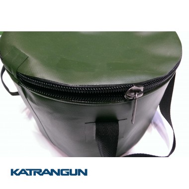 Складне 8-літрове відро KatranGun оснащено кришкою на блискавки і двома ручками. Виготовлено з міцного і довговічного чеського ПВХ, щільністю 620 гр / м2. Даний матеріал стійкий до механічних пошкоджень і перепаду температури, не боїться попадання маска і бензину, не вбирає запахи, легко миється. Вмонтований в верхній каркас відра, гнучкий трос дозволяє Гермосумка відмінно тримати форму і просто складатися. Шви водонепроникні, надійно склеєні. Бічні ручки витримують велику вагу. Відро можна використовувати для приготування і зберігання підгодовування, перенесення води, перевезення улову та іншого.