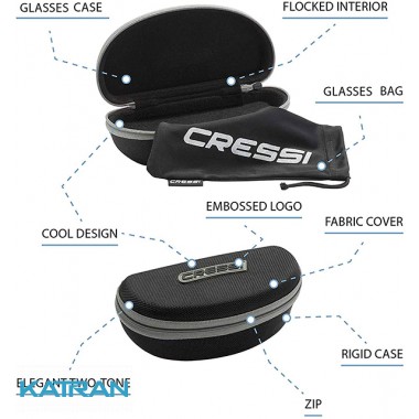 Сонцезахисні окуляри Cressi Sniper володіють чудовим оптичним якістю; вони блокують відблиски і захищають до 100% УФ-променів. Вони забезпечують чіткий зір, багате деталями, збільшуючи візуальний контраст. Вони захищають очі від сонячного випромінювання, відфільтровують відблиски і покращують зір. Поляризовані лінзи. Доступні в широкому асортименті кольорів. Дзеркальні лінзи покриті CRT (Cressi Revo Treatment), що покращує дзеркальне відображення і забезпечує відмінні характеристики при будь-якому освітленні.