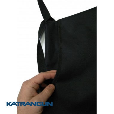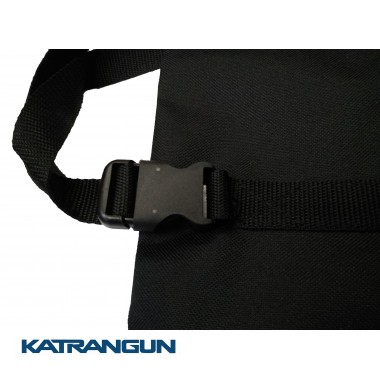 Сумка для раків KatranGun Раколов виконана у вигляді фартуха, тобто дизайн і крій виконані так, щоб підводний мисливець міг пов'язати сумку на пояс спереду. Вона дає можливість зібрати мідії, раків, рапани або крабів, не відволікаючись від полювання. Крім того, сумка має шлейки, які можна з легкістю регулювати в області шиї і талії, а також блискавку в дні, що допомагає просто і швидко скинути зібране на сушу. Карман у сумки розташований праворуч збоку і гарантує, що ні раки, ні краби не покинуть сумку.