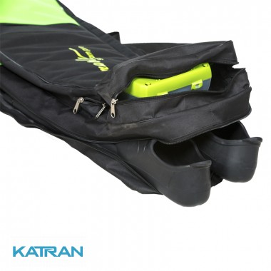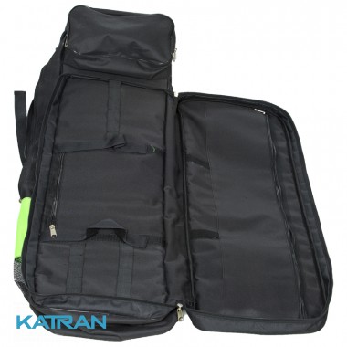 Універсальна сумка-рюкзак для спорядження підводного мисливця, що вміщає в себе довгі ласти, підводне рушницю, маску і безліч аксесуарів. Основний відсік, призначений для ласт довжиною до 97 см. У верхній частині сумки розташована кишеня для маски, його розміри дозволяють вмістити маску в захисному боксі. Відсік для підводної рушниці, має кріплення у вигляді двох строп-липучок, вони здатні закріпити повністю споряджений рушницю з фізичної довжиною до 80 см - з підствольним ліхтарем і котушкою. Також розташовані кишеню і гумки для необхідних аксесуарів: наконечників, заряжалкі, ліхтаря. На протилежному боці, під блискавкою, розташований універсальний кишеню з регульованою довжиною. На цій же стороні є гумки для фіксації гарпунів. Щільні і м'які стінки захистять ваше зброю від механічних пошкоджень. На лицьовій частині, внизу, розташований додатковий кишеню на блискавки, в якому можна розмістити дорожнє рушник або інші аксесуари. У відсіку для ласт присутній сітка для виведення вологи та вентиляції. Сумка оснащена двома м'якими плечовими ременями, петлею для підвішування і бічною ручкою для перенесення горизонтальному положенні. Подвійні бігунки на блискавці відсіків для ласт і для підводної рушниці полегшують доступ до вмісту.