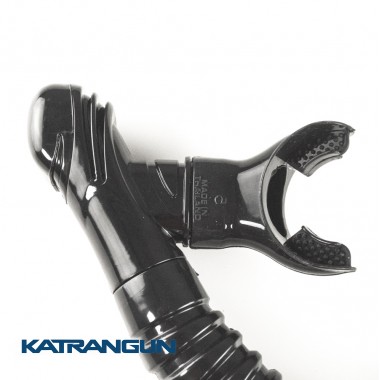 Однією з її ключових особливостей є те, що на відміну від більшості трубок з гофрованими вставками, ця модель має відформовану вигнуту форму що дозволяє утримувати її силіконовий загубник у роті без додатка додаткових зусиль! Це стає тим більш важливіше ніж триваліша ваша підводне полювання за часом перебування у воді.