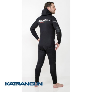 Beuchat Espadon Equipe - це оновлена версія одного з найпопулярніших гідрокостюмів серед підводних мисливців від компанії Beuchat - Mundial Equipe. Головною особливістю даної моделі є - новий покращений повністю анатомічний крій, за рахунок чого гідрокостюм більш комфортно сидить, не сковує рухів і краще зберігає тепло. Проблемні зони (пахви, вигини рук і вигини колін) має безшовні вставки, завдяки чому не будуть натирати тіло і викликати дискомфорт. Змінено також захисне покриття на колінах, ліктях і грудях - тепер воно виконано з міцнішого і зносостійкого матеріалу - поліуретанового напилення. Шолом також трохи змінився, в даній моделі він має менший отвір. Краї рукавів, штанин і шолома додатково прооверлочені.